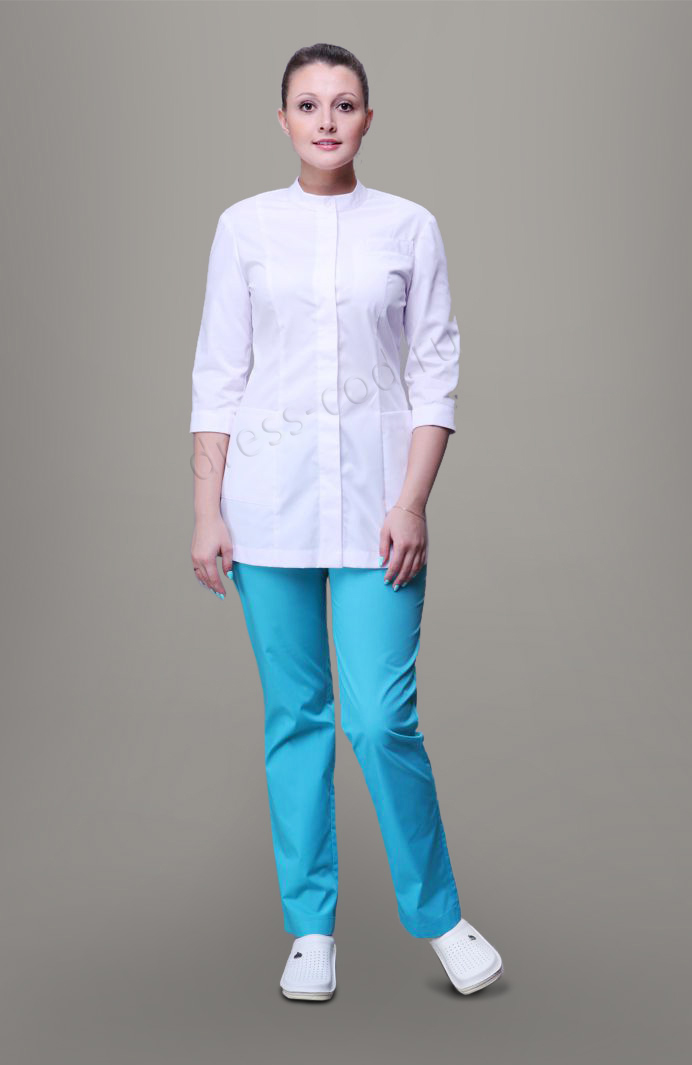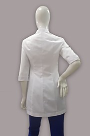 Прилегающего силуэта. Застежка патойная, планка на кнопках. Рукав втачной 3/4. Воротник стойка. Фасонные линии спереди и сзади из плеча вертикально вниз. Карманы спереди расположены между фасонными и боковыми швами. Ткань "сатори" 145г/м.